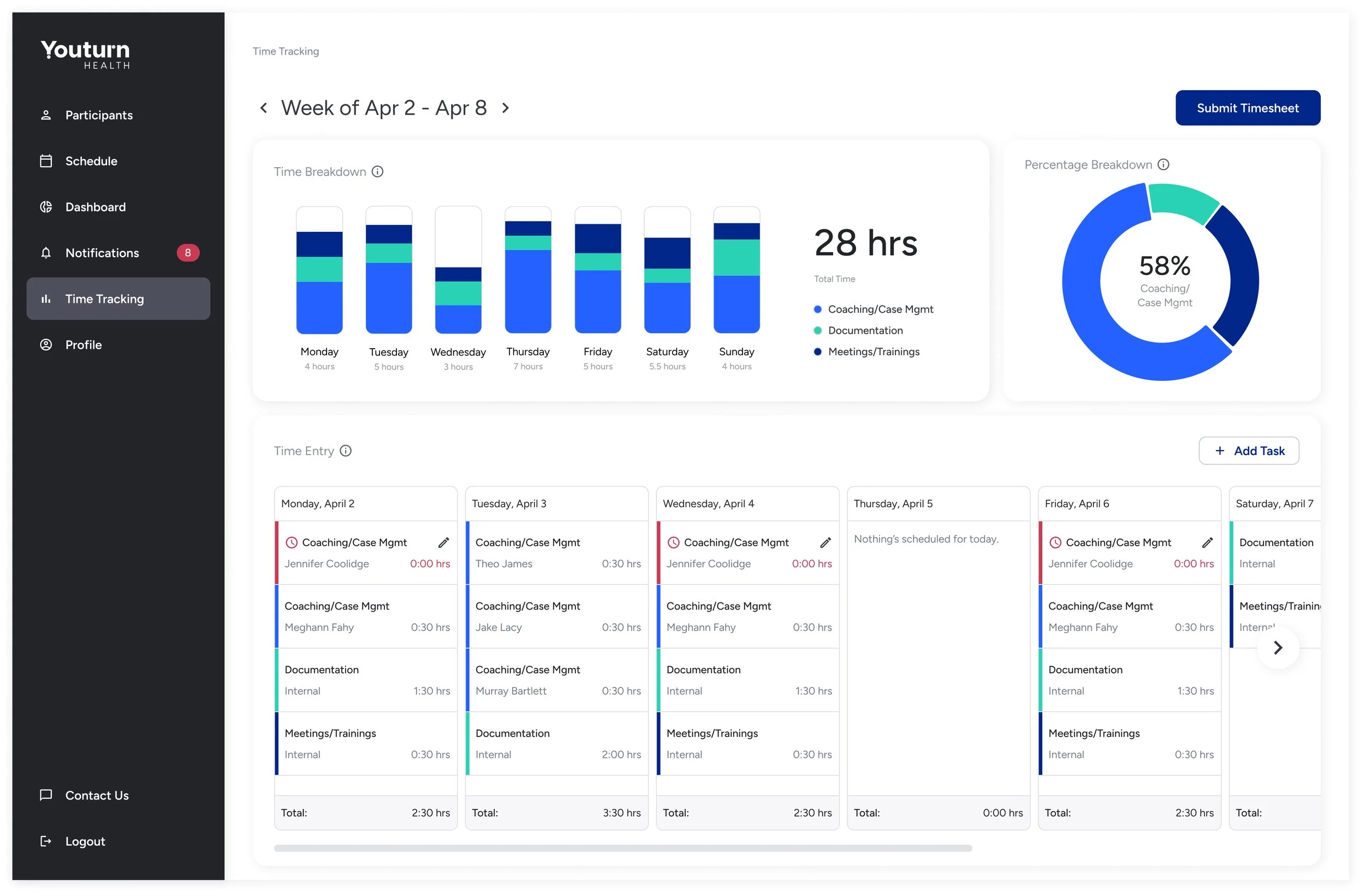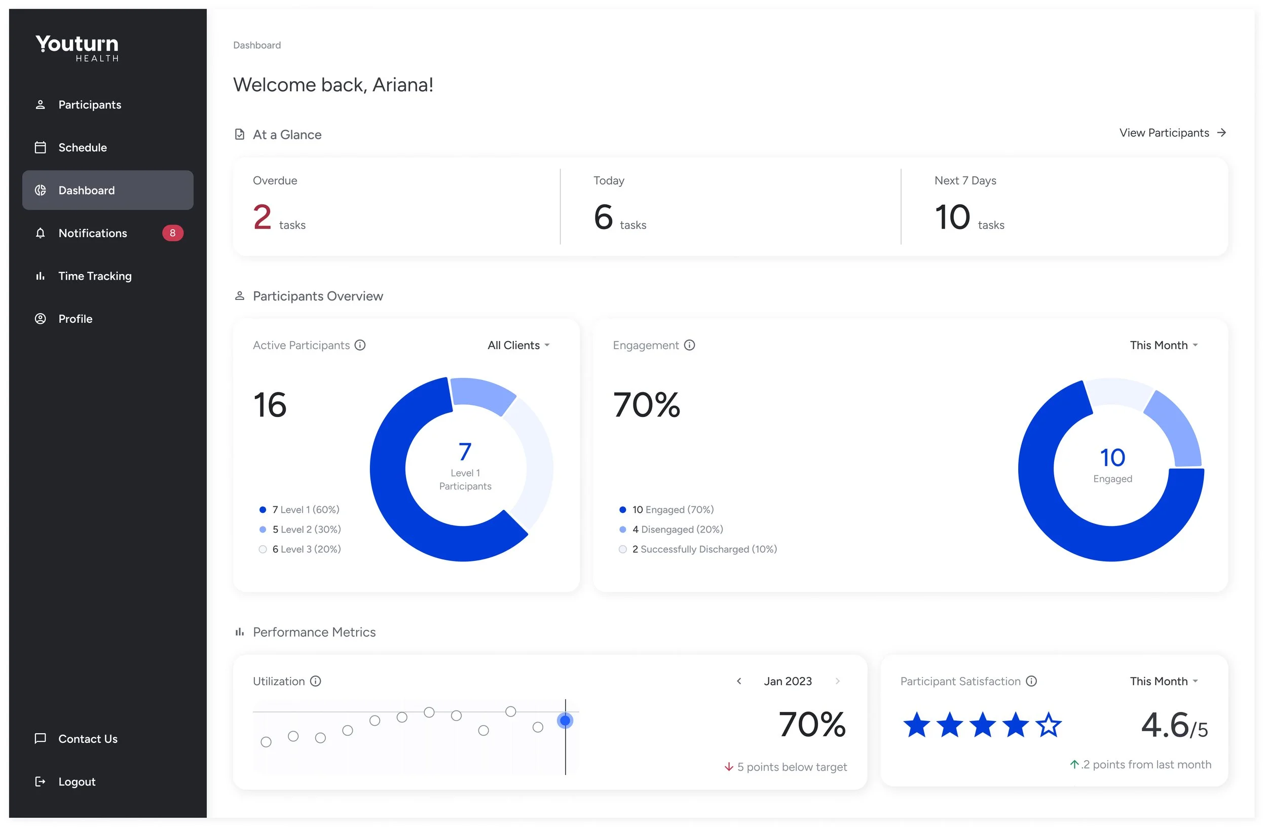 Coaches deliver exceptional care and need quick access to review participants' recovery journeys. They prioritize educating participants and emphasizing the benefits of Youturn Health.